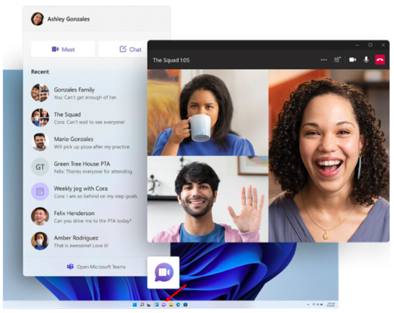 Teams is about to see another big boost with Windows 11. It’s natively integrated with an icon on the taskbar. Users can click to start a video call, audio call, or chat right from the desktop without having to launch the full application. This shaves time off the process to launch a video meeting, and all those minutes add up to saved hours throughout the week.