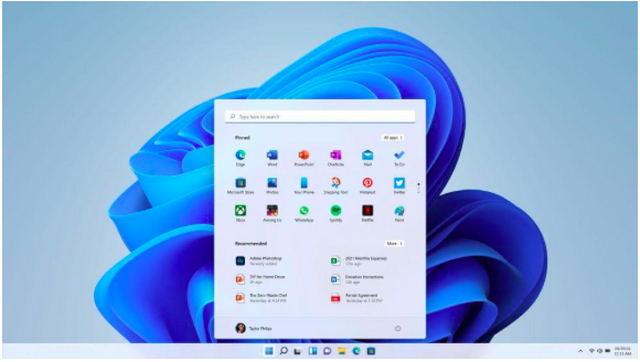 Windows 11 streamlines the start menu, removing things that are unnecessary and giving users pinned apps and settings at the top. The search bar has also been moved from the taskbar to the top of the Start menu.