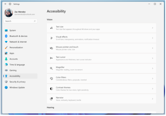 New Accessibility Panel in Windows 11